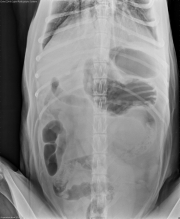 This week’s case is a 7-year-old male neutered Giant Schnauzer with abdominal discomfort and vomiting after being groomed. This case is a common presentation in the emergency room. What is your interpretation?